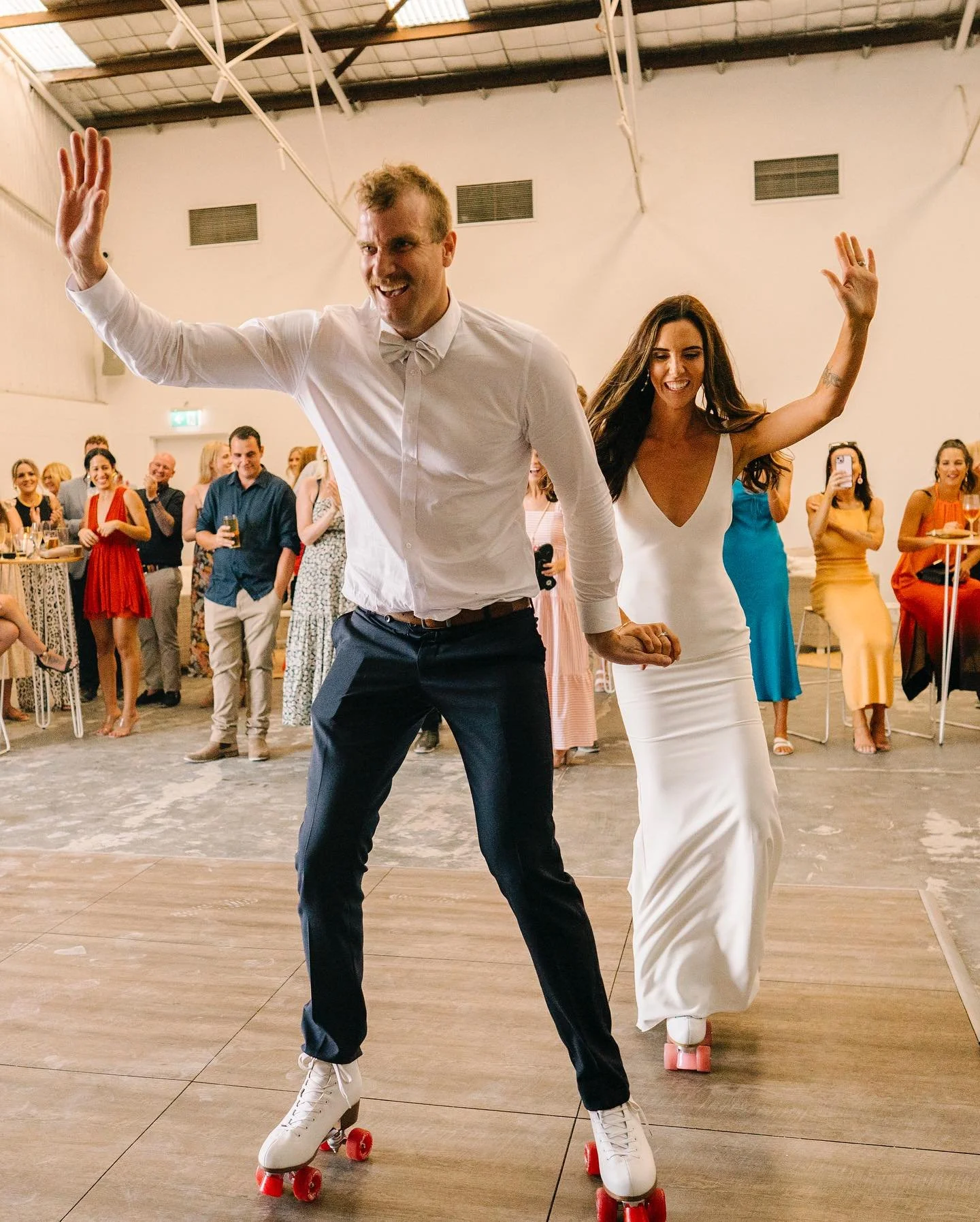 A bridal entrance on roller skates was a very unique element to this wedding and a massive surprise for the guests!