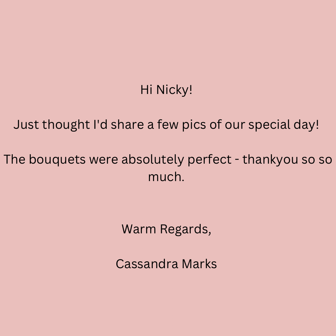 I got a phone call from Cassies mum saying her wedding was in four weeks and they had ordered flowers online they where not want they had expected and asked if I could help.